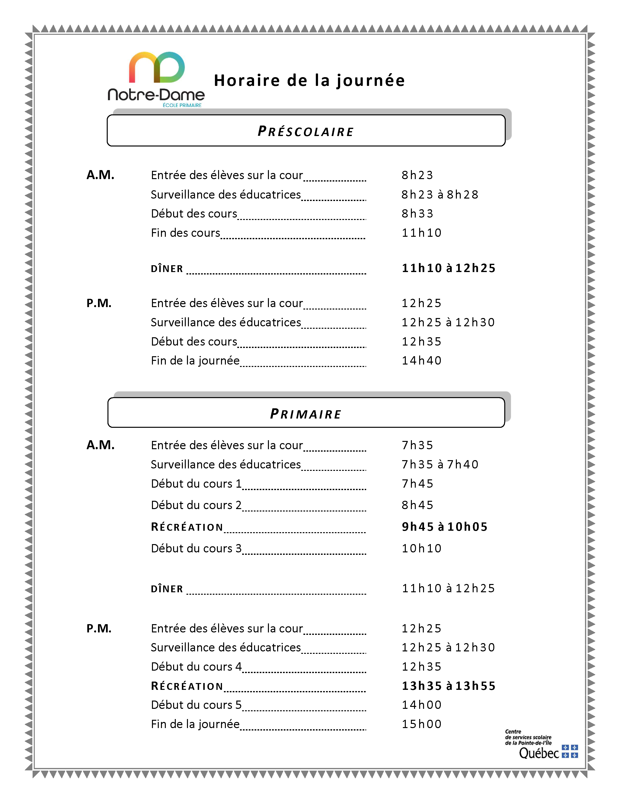 | Préscolaire | Liste des classes du préscolaire: Document à télécharger |